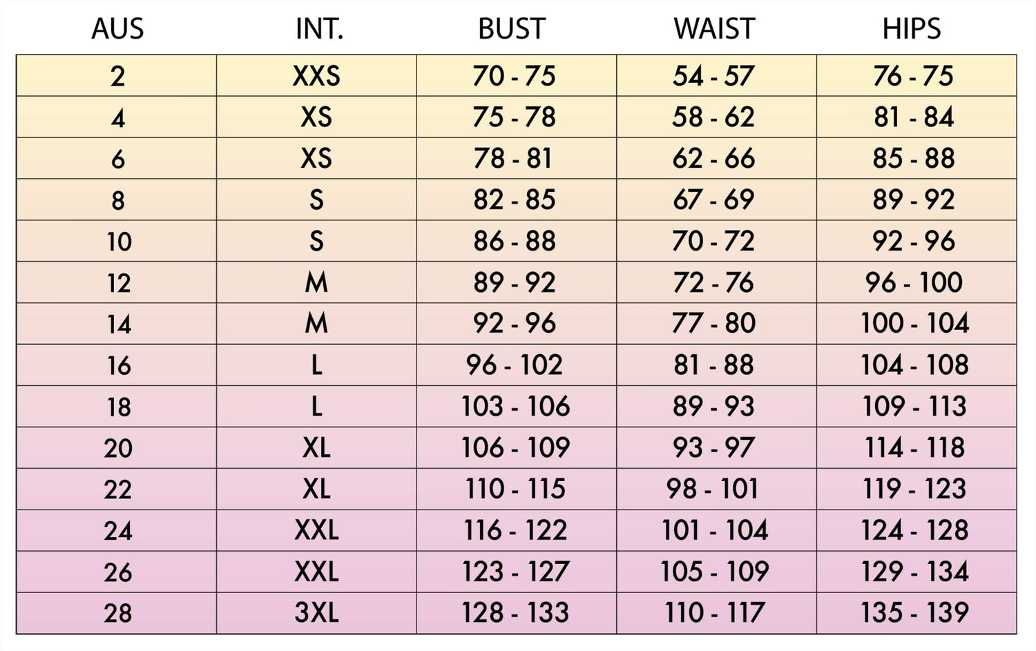 Swimwear Size Guide